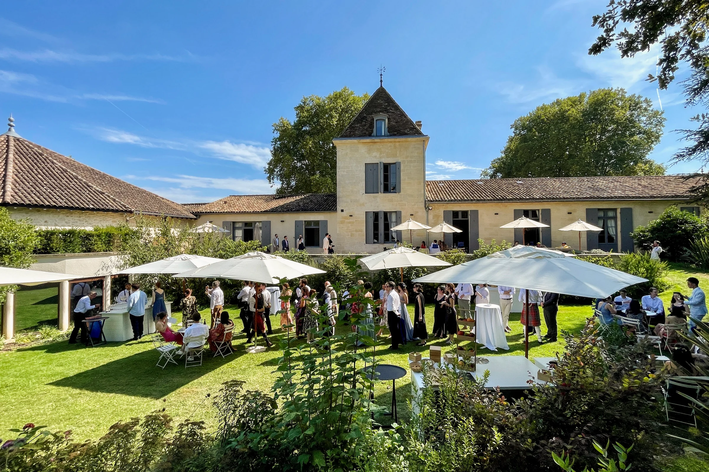 Playlist lounge soignée, micro pour les discours et sonorisation discrète.